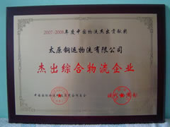2008年5月24日,我公司在“第二屆中國(蘇州)國際物流與供應(yīng)鏈合作發(fā)展峰會”和“現(xiàn)代物流報(bào)社”表彰活動(dòng)中獲得“中國杰出綜合物流服務(wù)企業(yè)”殊榮。