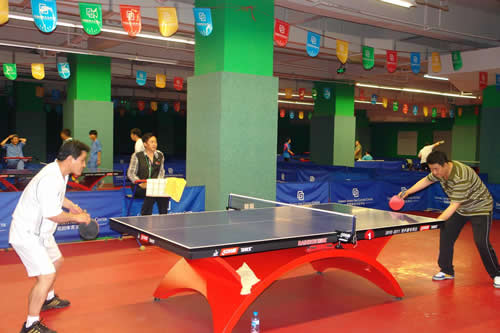 下圖為2014年6月17日,進行的羽毛球和乒乓球的比賽