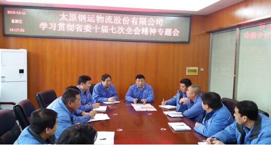 12月11日,按照尖草坪經(jīng)信局黨委的要求,公司黨委召開各分公司和各部室負責人專題會議,傳達學習貫徹省委十屆七次全會精神。會議傳達了《中共山西省委關于制定國民經(jīng)濟和社會發(fā)展第十三個五年規(guī)劃的建議》、省委書記王儒林同志的重要講話精神以及對《“十三五”規(guī)劃建議》的說明。 公司要求把學習貫徹省委十屆七次全會精神作為當前一項重要政治任務,與學習貫徹十八屆五中全會精神結合起來,與學習貫徹習近平總書記系列重要講話精神結合起來,與“三嚴三實”專題教育結合起來,精心組織實施,迅速掀起學習宣傳貫徹的熱潮,要認清形勢、搶抓機遇,知難而進,進一步明晰鋼運物流發(fā)展思路,加快企業(yè)發(fā)展步伐。
