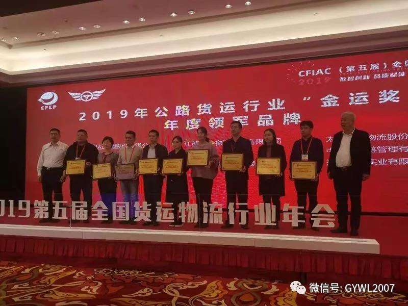 公司榮獲2019年公路貨運(yùn)行業(yè)“金運(yùn)獎”年度領(lǐng)軍品牌榮譽(yù)